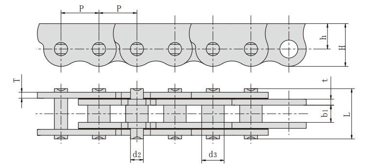 不銹鋼雙節(jié)距加長軸輸送鏈