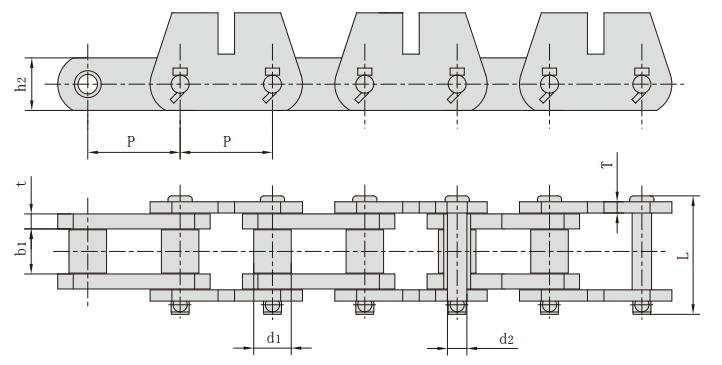 P152F248,帶附板輸送鏈,工程鏈條廠家,鏈條規格參數