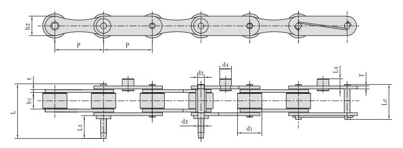 不銹鋼雙節距加長軸輸送鏈