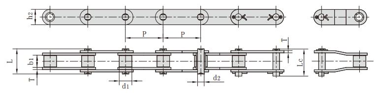 | 鏈號 | 鏈號 | 節距 | 滾子直徑 | 內節內寬 | 銷軸直徑 | 銷軸長度 | 內鏈板高度 | 鏈板厚度 | 抗拉強度 | 平均抗拉強度 | 每米長重 | |