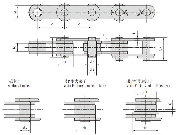 鏈號 節距 滾子尺寸 套筒直徑 內節內寬 銷軸直徑 鏈板高度 銷軸長度 鏈板厚度 抗拉強度