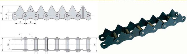 農(nóng)業(yè)機(jī)械用夾持輸送鏈(或簡(jiǎn)稱夾持鏈)是專門用于農(nóng)業(yè)自動(dòng)脫粒機(jī)械與半喂入式谷物聯(lián)合收割機(jī)等農(nóng)業(yè)機(jī)械上夾持和輸送作物莖稈的鏈條,因此這種鏈條也稱作農(nóng)業(yè)機(jī)械喂入鏈、脫粒機(jī)鏈。夾持鏈分為不帶套筒的鏈條結(jié)構(gòu)形式和帶套筒鏈條的內(nèi)鏈節(jié)結(jié)構(gòu);夾持鏈在水稻收割機(jī)上應(yīng)用非常廣泛。鏈條的基本結(jié)構(gòu)與套筒滾子鏈類似,其特點(diǎn)是這種鏈條鏈板為高尖齒狀,且內(nèi)節(jié)內(nèi)寬很大,以增加夾持的寬度和牢固性。在工作時(shí)夾持鏈與導(dǎo)軌共同形成對(duì)作物莖稈的承托和夾持,并依靠鏈條的運(yùn)轉(zhuǎn)達(dá)到均勻輸送莖稈的目的。夾持鏈?zhǔn)褂脮r(shí)一般速度較低,工作中承受拉伸載荷也較小,屬于超輕型功能性輸送鏈。夾持輸送鏈可以多排并列使用。另外根據(jù)實(shí)際需要,只要加大鏈條鉸鏈和內(nèi)、外鏈板間的間隙,夾持鏈也可以具有側(cè)彎的功能。